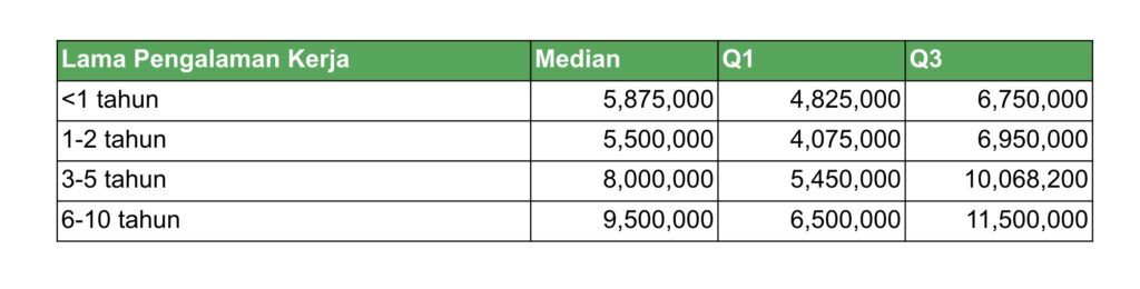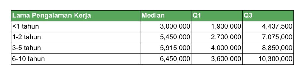 Data tersebut juga sudah kami himpun mulai dari pengalaman kerja kurang dari 1 tahun hingga 6-10 tahun.