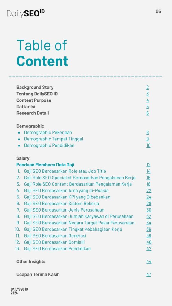 Melihat hal tersebut, DailySEO ID mencoba untuk mengadakan SEO salary survey, di mana pada survei tersebut telah dimulai pada Maret 2024 dan diikuti oleh 320 orang dari berbagai macam profesi yang berkaitan dengan SEO.