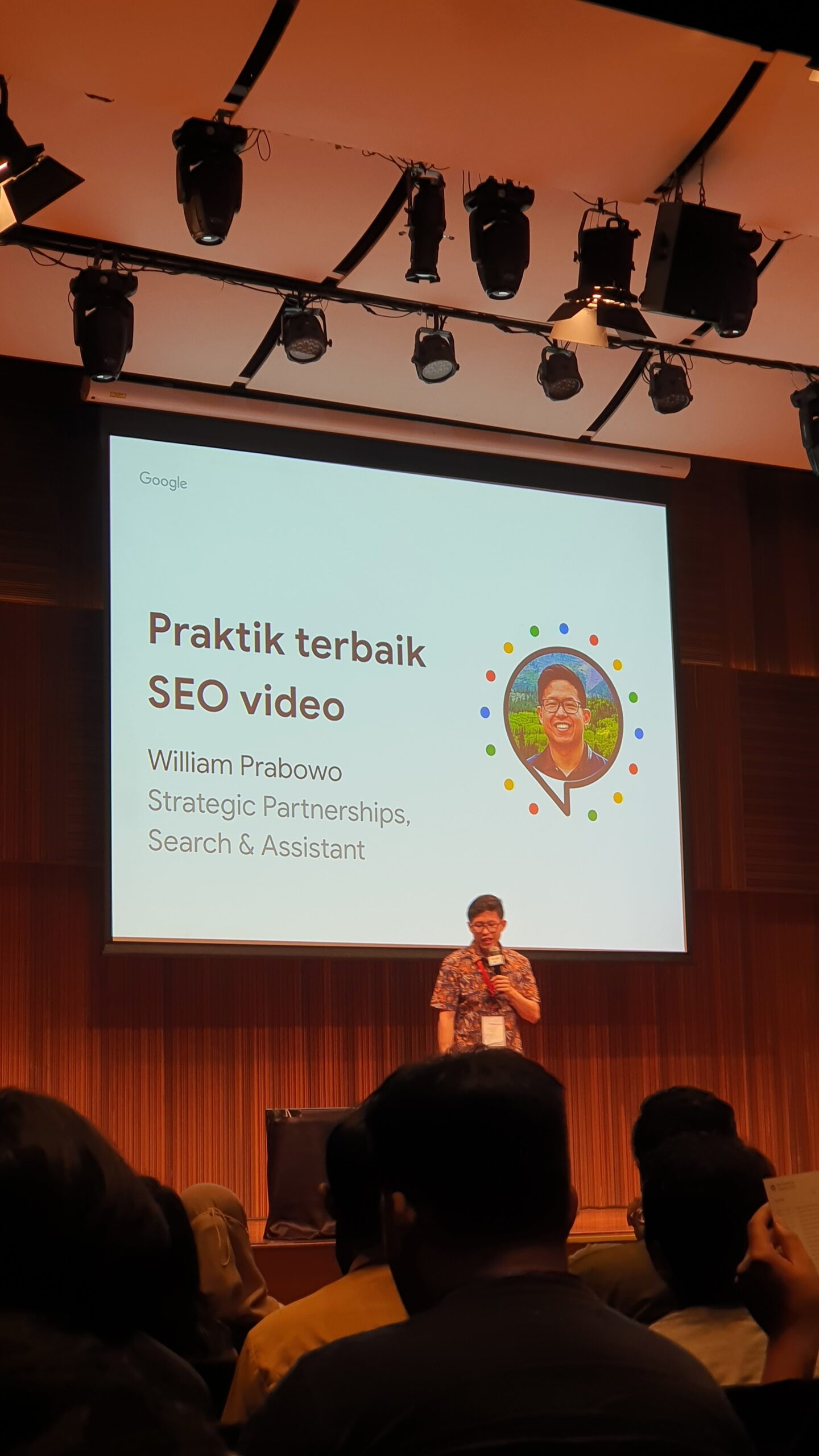 Presentasi yang berjudul “Praktik Terbaik SEO Video” ini dibawakan oleh William Prabowo (Strategic Partnership, Search and Assistant).