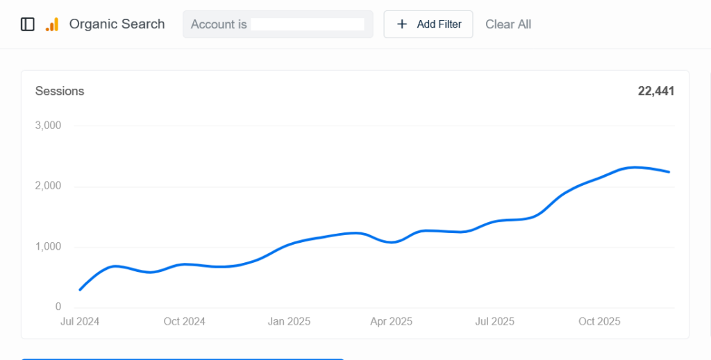 Dalam hal brand visibility dan traffic yang dihasilkan, kami mencapai peningkatan 693%+ dalam monthly organic traffic (294 menjadi 2243)